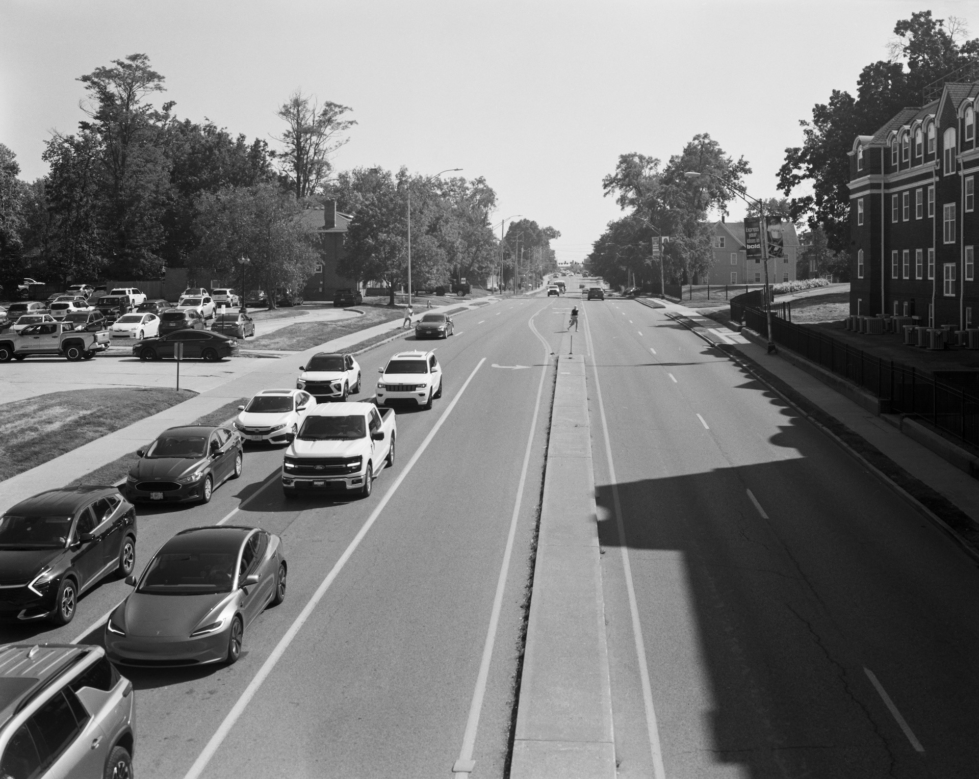 My relationship to cars carries a kind of transcendental unease. I don’t own one and never planned to. Being here temporarily, I resist that dependency. What began as culture shock—entering a landscape shaped by engines and absence—gradually slipped into something dreamlike. Highways started to feel like suspended zones of alertness, parking lots like monuments to stillness. With time, each commute became less motion and more acquiescence.